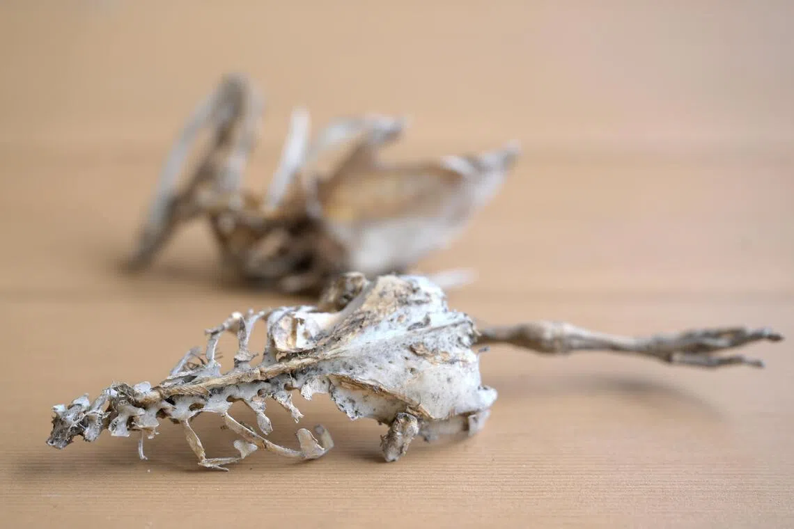 Bones from prey that NParks staff removed from the peregrine falcons' nesting trays on March 14.