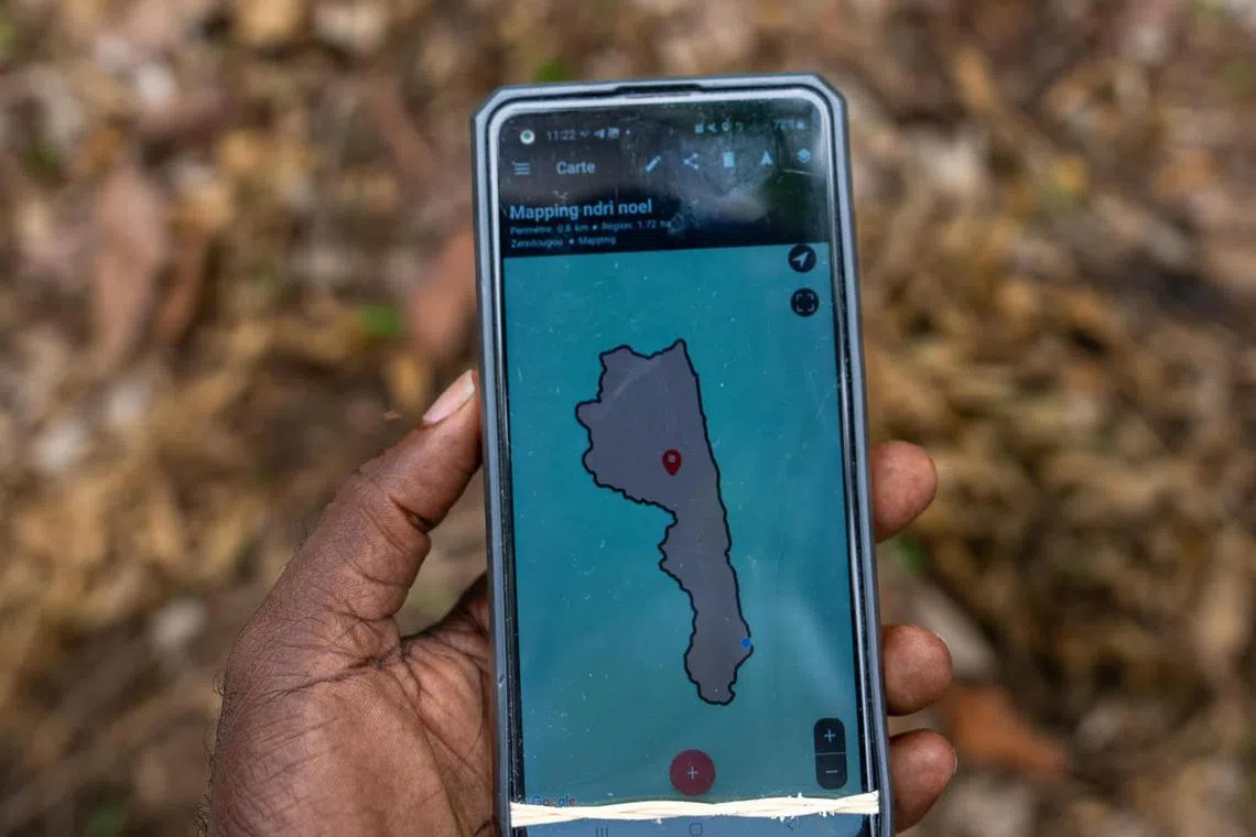 A farm’s boundaries in Tiassale, about 140 km from Abidjan, can be monitored using satellite data on an app.
