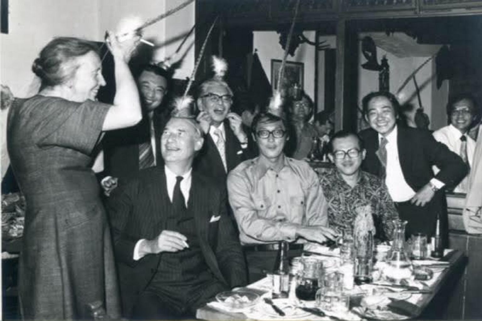 Emeritus Senior Minister Goh Chok Tong's book includes a photo of himself and former Hong Kong chief executive Tung Chee Hwa at a party in Vienna in the 1970s.