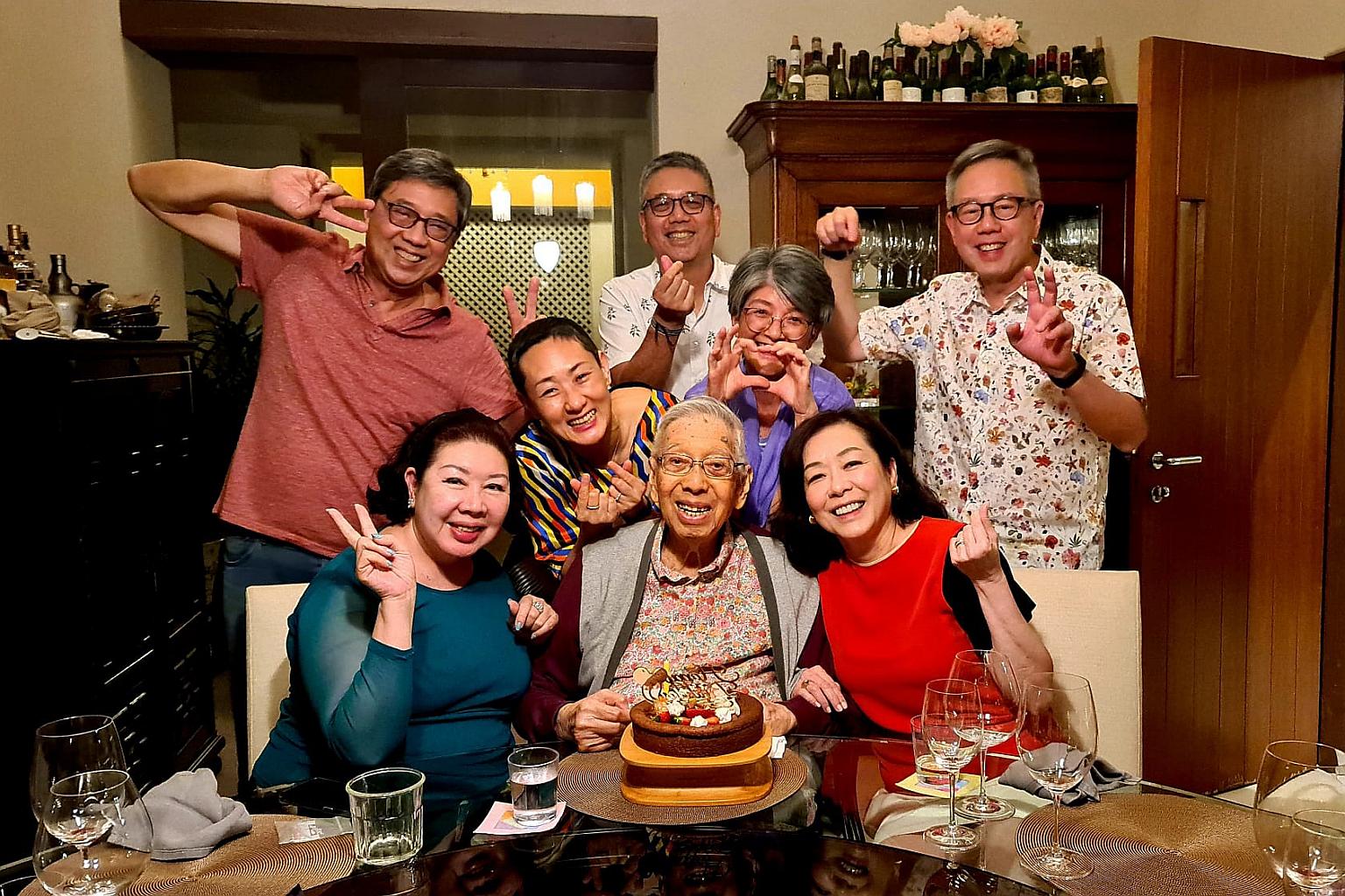 Dr Richard Eu (centre) surrounded by his children and their spouses on one of his birthdays.