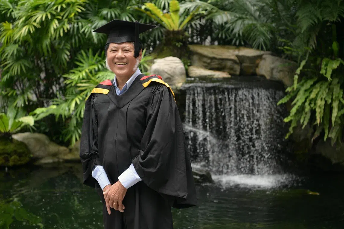 Mr Tan Tiang Wang, 73, retired from work in 2019, but that did not stop him from pursuing his studies. He will graduate with a Bachelor of General Studies and is currently pursuing a graduate diploma in gerontology at SUSS.