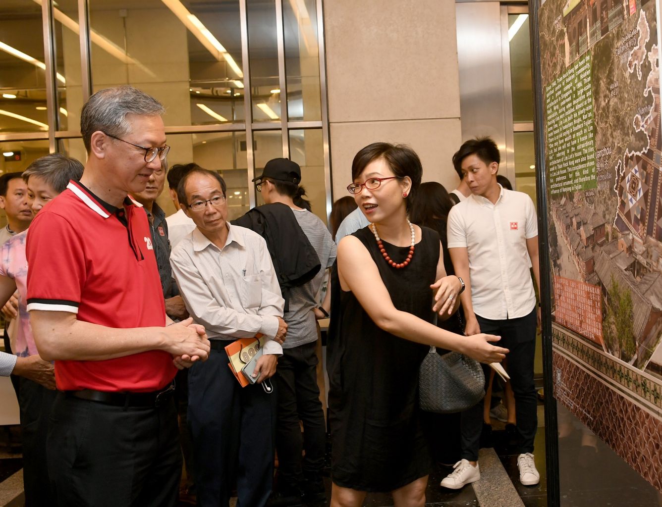 Guest of honour and Minister of State Sam Tan is guided by adjunct assistant professor at the NUS department of architecture, Dr Chen Yu, at an exhbition showing different aspects of Hokkien architecture, both in China and in Singapore.