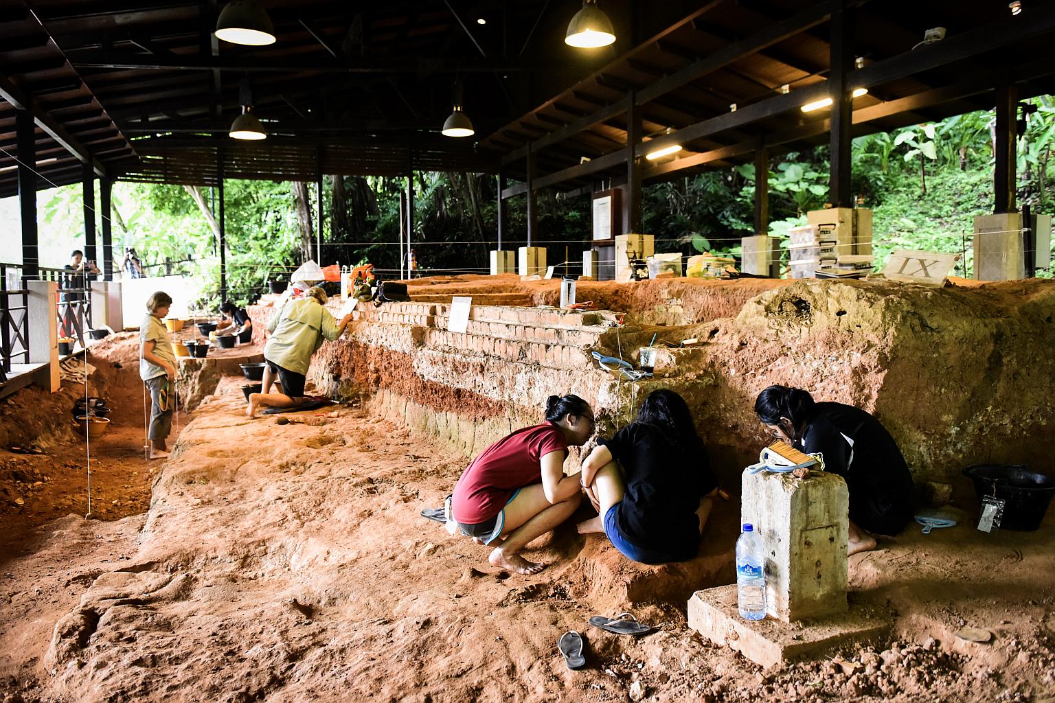 At around noon on Sunday, the archaeological team found a rare piece of Thai ceramic. It is only the second such piece found in the area.