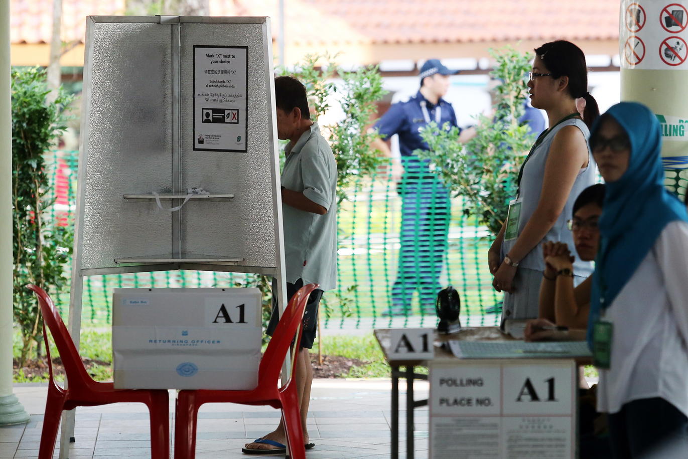 Voters at the polling station at Bukit Batok Secondary School on May 7.