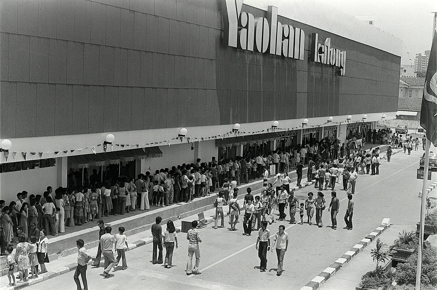 A long queue of people waiting to get into Yaohan Katong on the second day of its opening on Aug 28, 1977. The Japanese department store company opened at Plaza Singapura in 1974. In 1997, its parent company in Japan was declared insolvent.