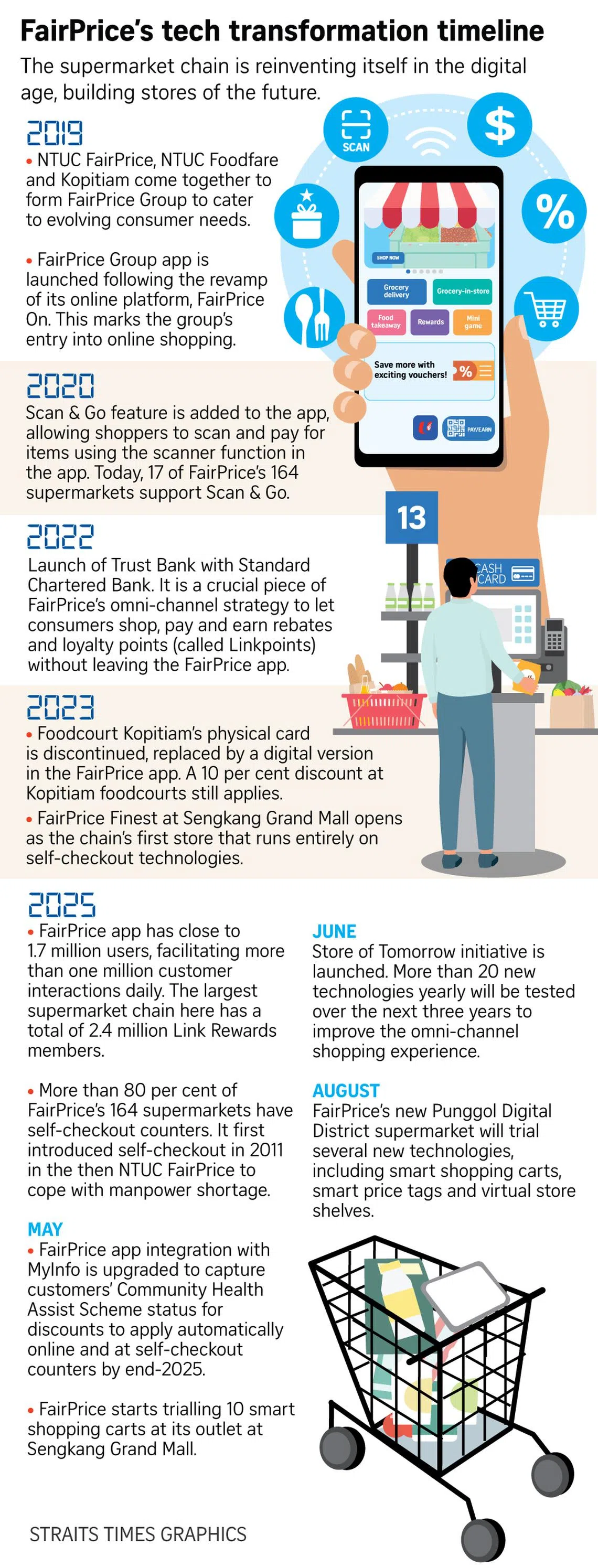 “This is well beyond self-checkout. Your whole shopping is done in your own shopping cart,” said Mr Chawla, noting that FairPrice’s self-checkout services islandwide now process more than half of total store transactions.