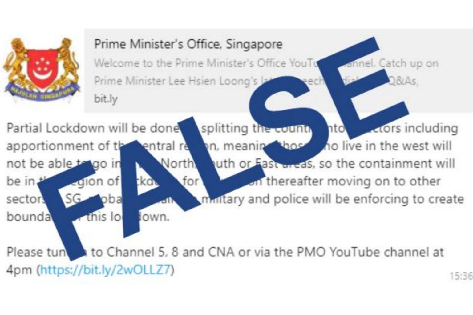 The message in circulation is similar to an old WhatsApp chain message that refers to a "partial lockdown" of Singapore, where the country is alleged to be split into four sectors - north, south, east and west.