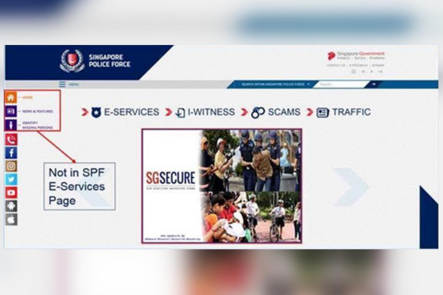 In January, the police warned of an impersonation scam in the form of a fake SPF website designed to trick people into providing their personal and financial information.