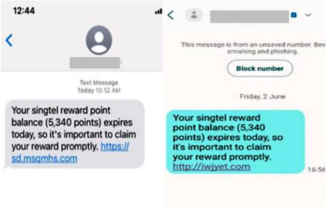 Victims would receive an unsolicited SMS urging them to redeem expiring Singtel points with rewards such as an Apple Watch.