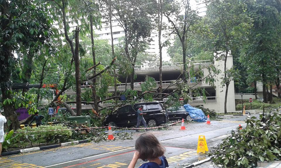 Fallen tree at Pandan Valley condominium damages at least 5 cars