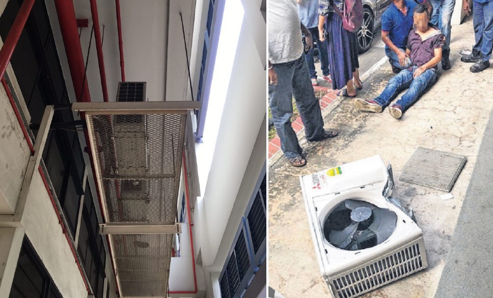 An eyewitness told ST that he had been walking along a hallway when the unit was dislodged and fell on him.