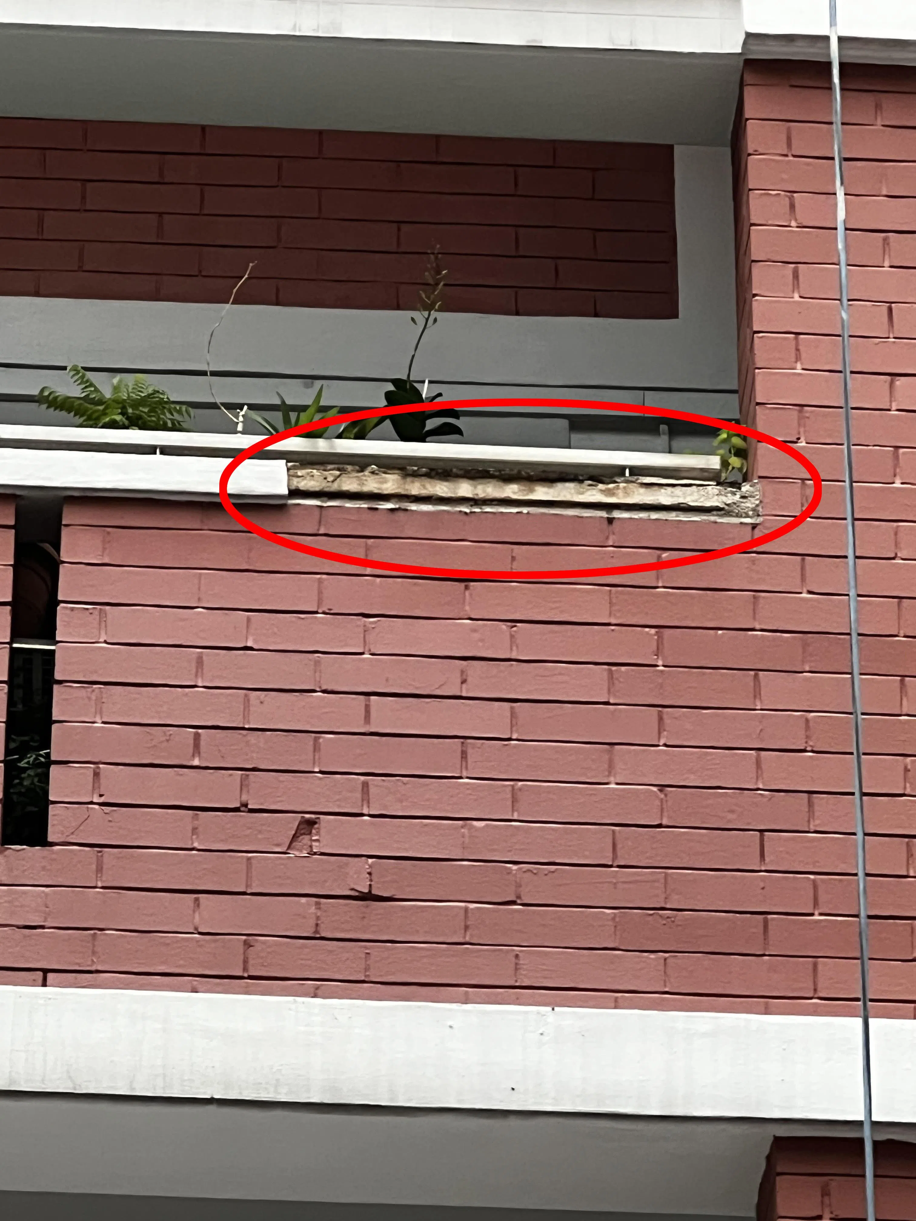 Shin Min Daily News reported on Monday that a dislodged brick from the facade of a Housing Board block in Hougang had fallen four storeys and ended up inside a BMW.