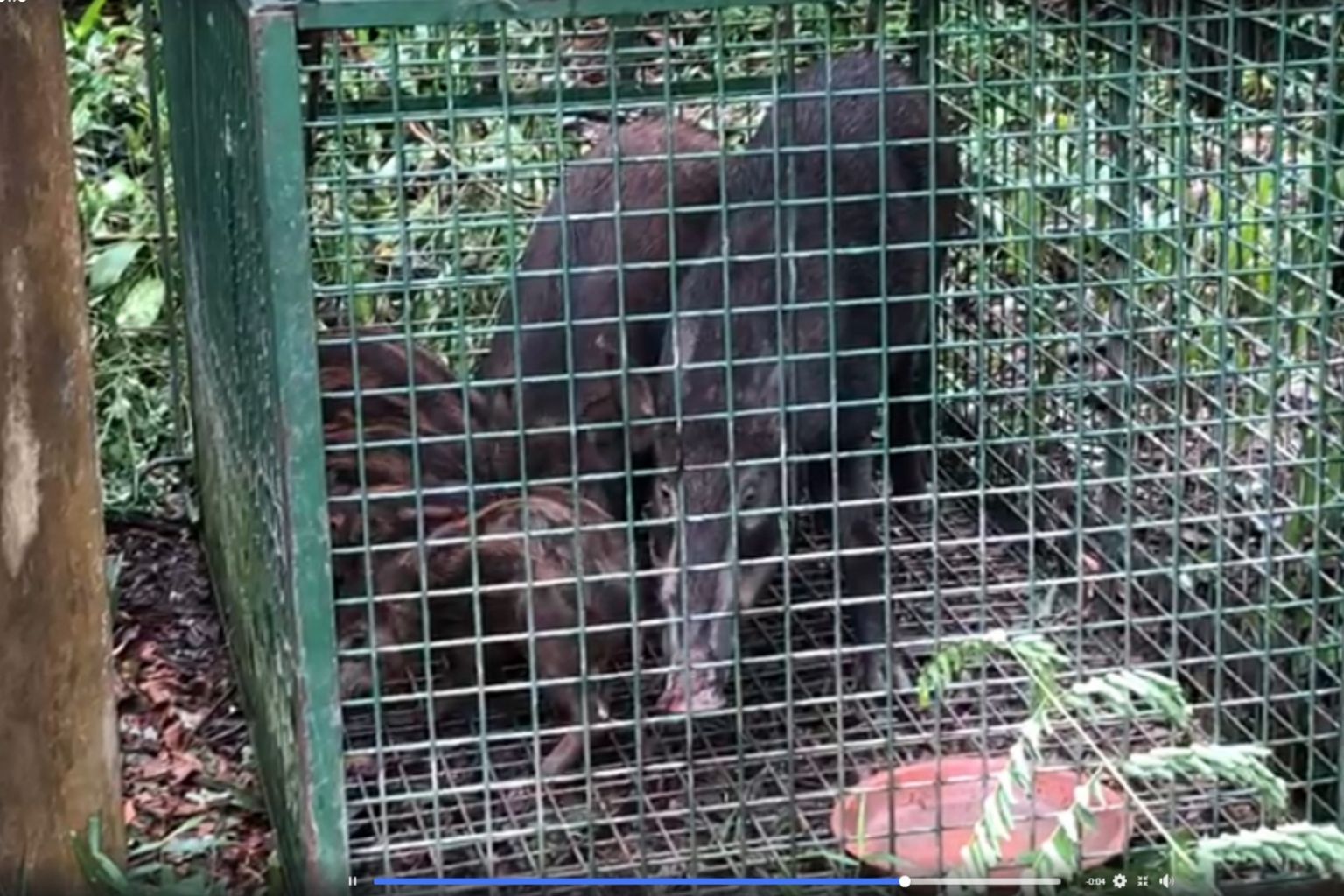 Family of 2 wild boars and 3 piglets found distressed, trapped in cage off Sime Road
