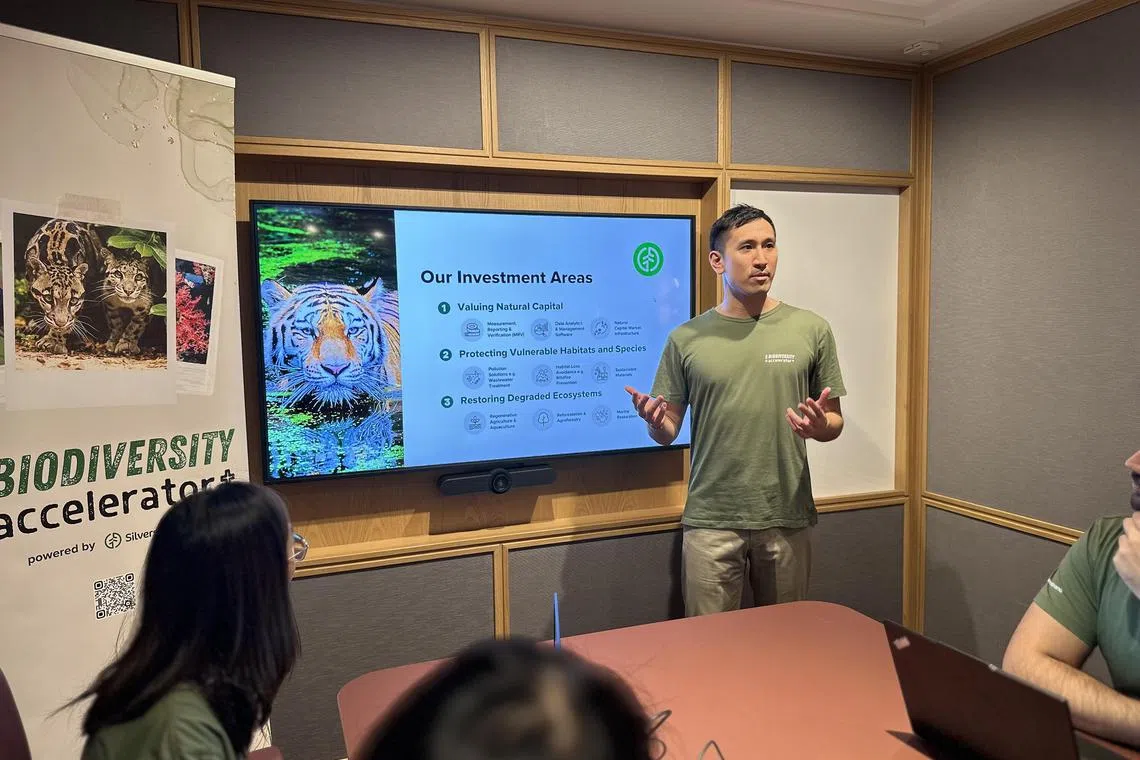 Silverstrand founder Kelvin Chiu speaking to participants of its Biodiversity Accelerator programme in August 2023. The programme aims to support early-stage companies that provide solutions to valuing, protecting and restoring natural ecosystems.