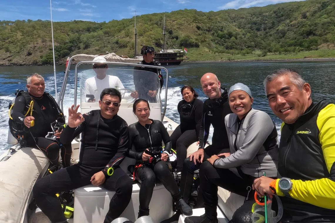 Rumah Group director Kathlyn Tan (third from left) and her husband Thomas Knudsen (third from right), who is also a director at Rumah Group, with representatives from environmental charity Konservasi Indonesia, Conservation International and other guests on a site visit to an ocean conservation project that Rumah Foundation is supporting.