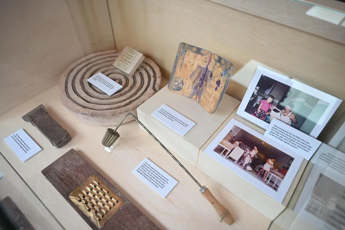 Artefacts on display include a heating coil used by the late Mr Quek Tren Wen to prepare popiah skins, which acted as a stove.