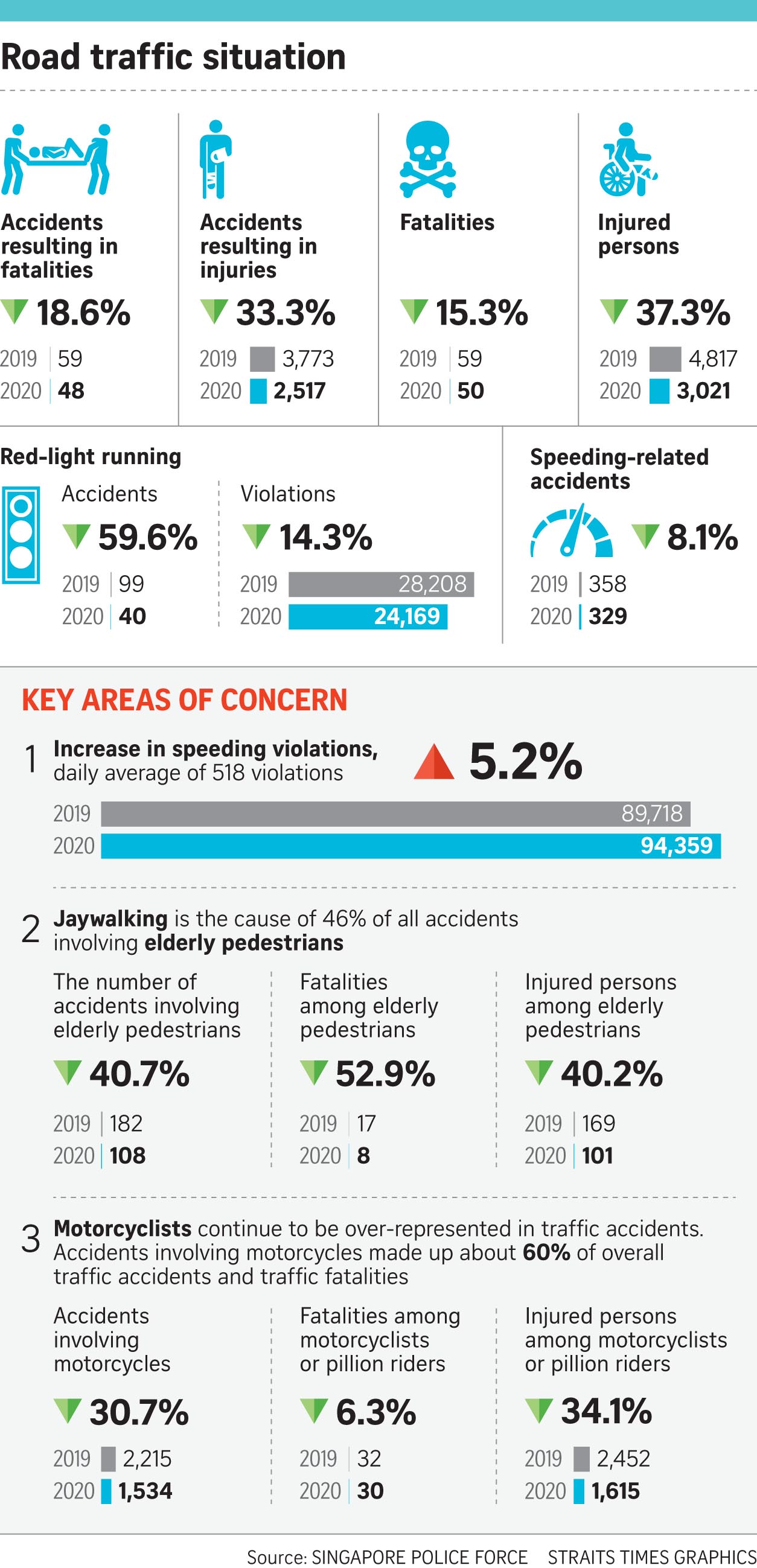 With less traffic on the roads during the circuit breaker period, traffic accidents resulting in injuries or fatalities fell by more than 30 per cent in the first half of this year.
