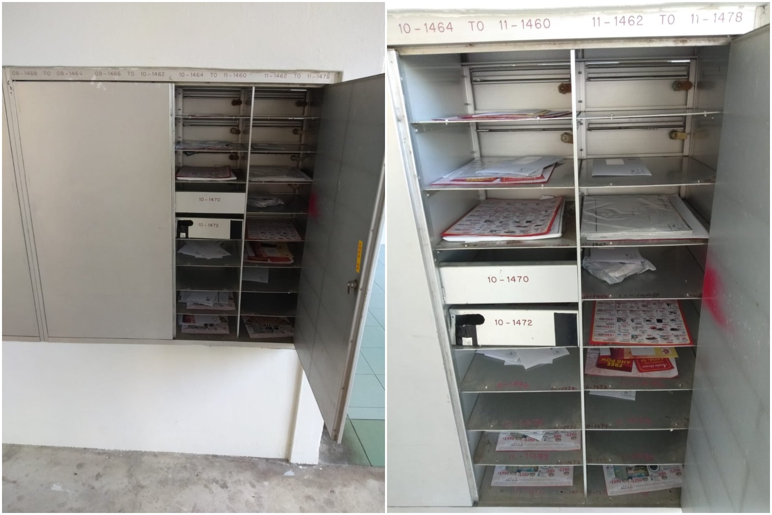 SINGAPORE - Several letterboxes were left open at Block 621 Bedok Reservoir Road for several hours on Feb 8 due to a faulty latch.