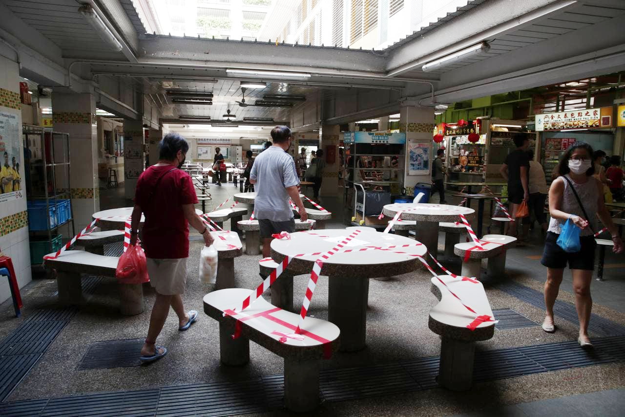 Singapore hunkered down on Sunday - the first day of the new tightened Covid-19 restrictions - with fewer people out and about at shopping malls, parks, hawker centres, and wet markets across the island. Until June 13, people are allowed out only in groups of two, and dining in is prohibited.