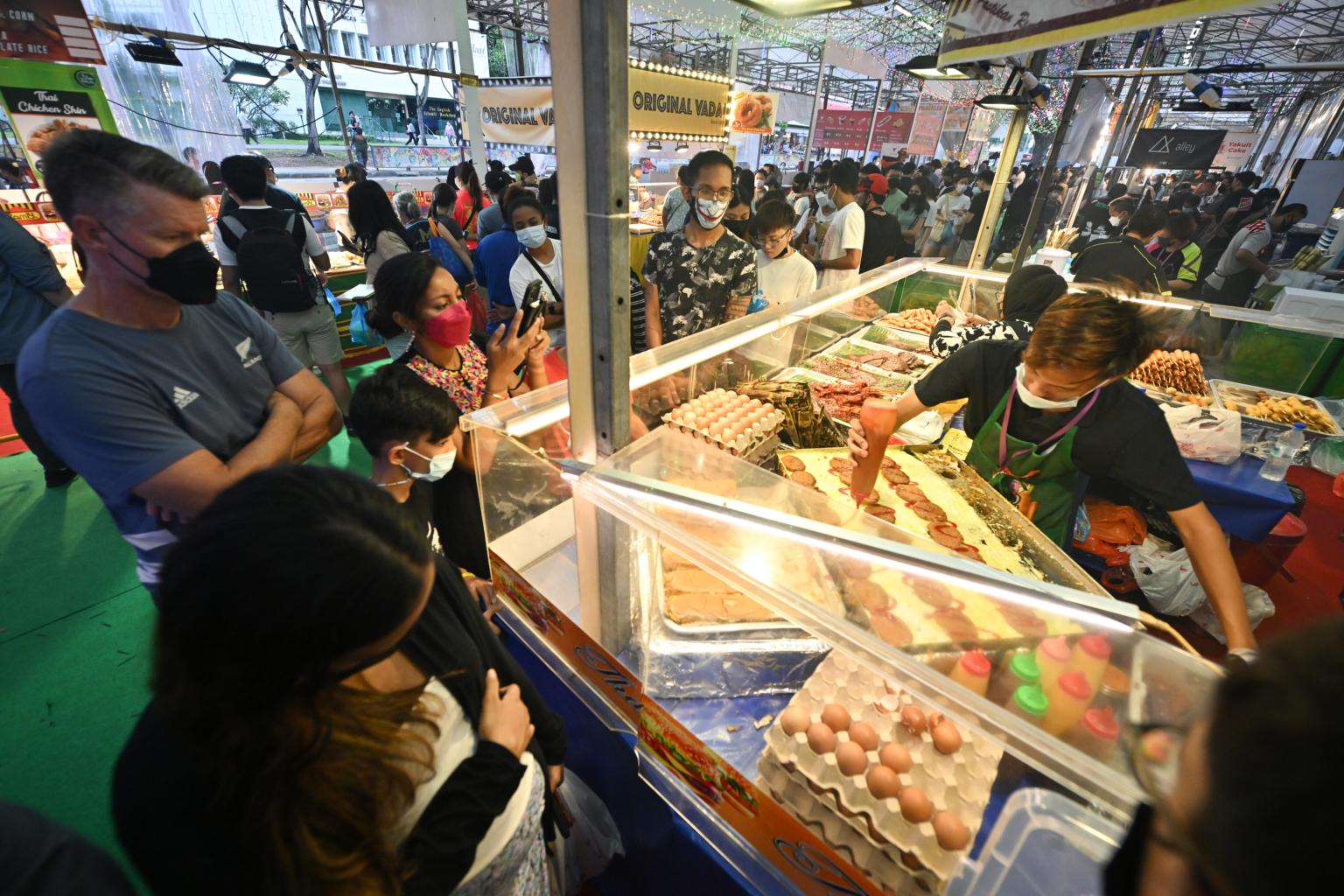 People queueing for food at the Geylang Serai Bazaar on April 3, 2022.