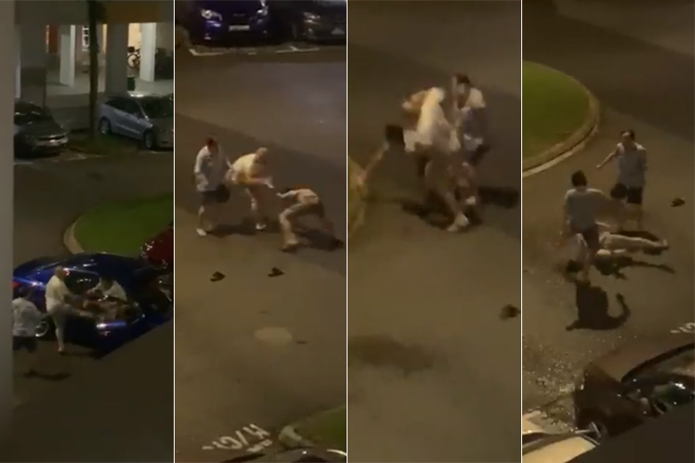 In a video that was posted on Facebook but was later taken down, three men can be seen hitting one another as they came out of a blue car. They continued fighting in the carpark.