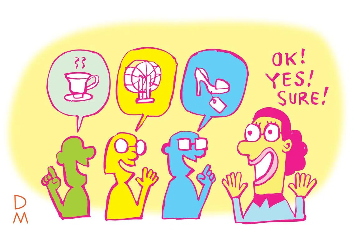 You go along with everyone else’s views. You don’t have strong opinions about where to go or what to do.