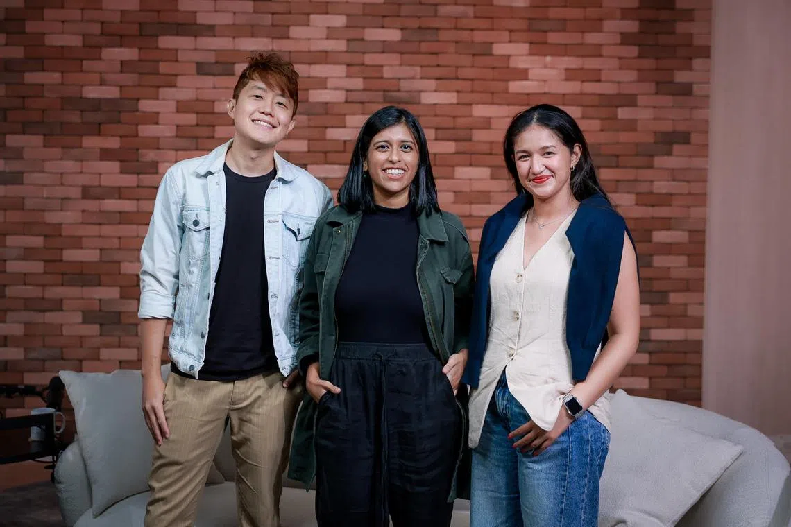 The Usual Place Podcast host Natasha Ann Zachariah (centre) talks about 2025 travel trends with The Travel Intern co-founder Hendric Tay (left) and The Straits Times travel journalist Sarah Stanley (right).