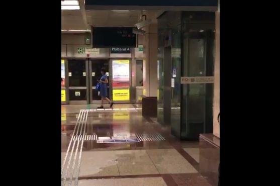 A video sent to The Straits Times on Wednesday showed a curtain of water dripping at a lift in the MRT interchange station.
