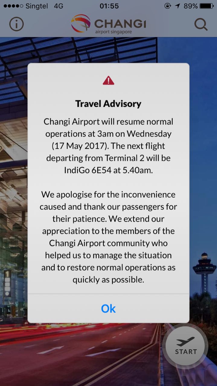 At 1.55am, CAG announced on its smartphone app that its airport will resume normal operations at 3am on Wednesday (May 17). It apologised for the inconvenience caused and thanked its passengers for their patience.