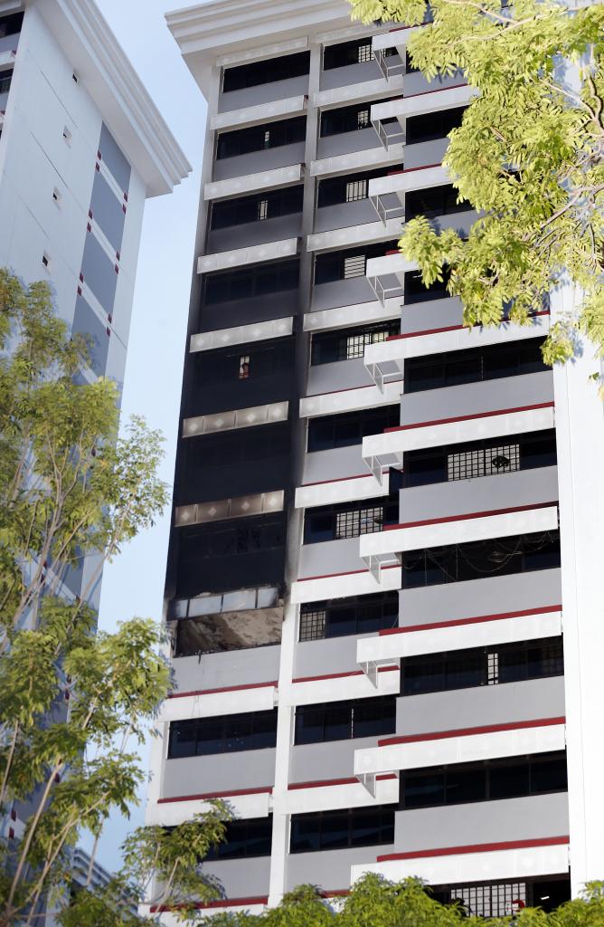 When The Straits Times visited the scene, at least four other units above the ninth-floor unit were blackened on the outside. An area around the block was cordoned off, and there were at least three police vehicles.