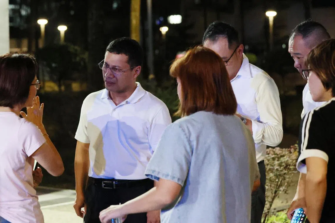 Education Minister Desmond Lee (2nd from left), an MP for West Coast-Jurong West GRC, arrived at the scene at about 8pm to speak with affected residents.