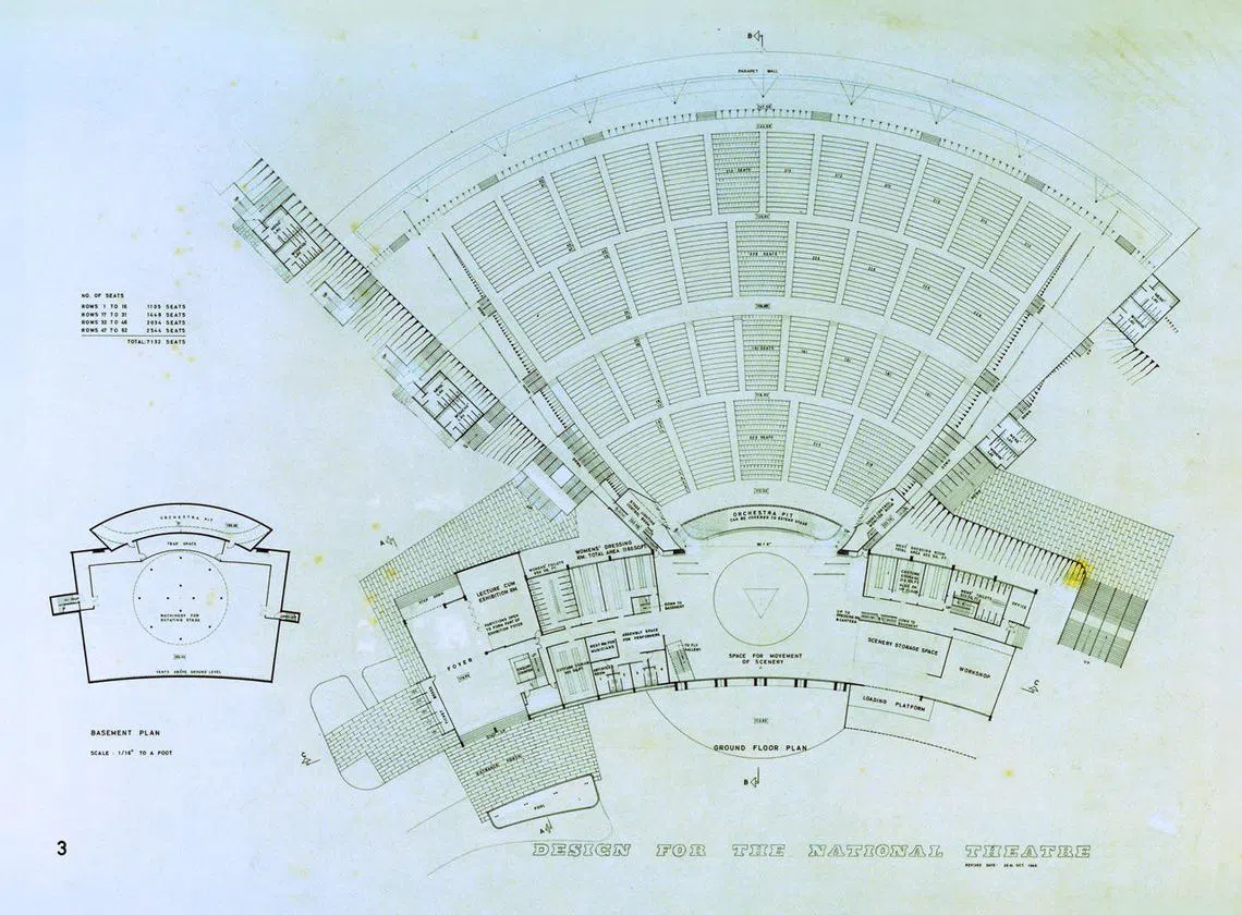 A ground-floor plan of the National Theatre, dated 1960, from the Singapore Architecture Collection. It was donated by Alfred Wong Partnership.