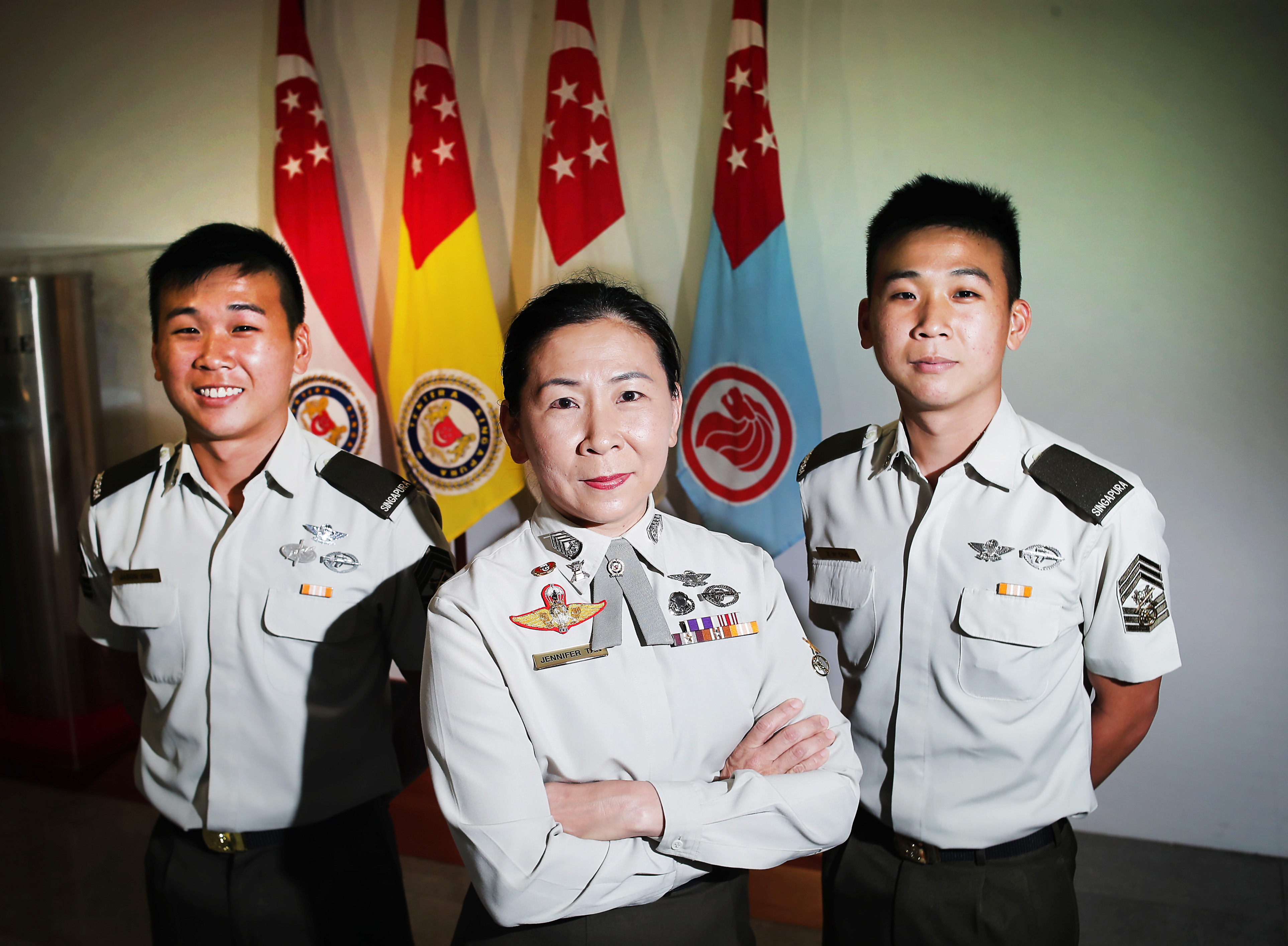 (From left) Master Sergeant Jason Ong, Senior Warrant Officer Jennifer Tan and Master Sergeant Jeffrey Ong.