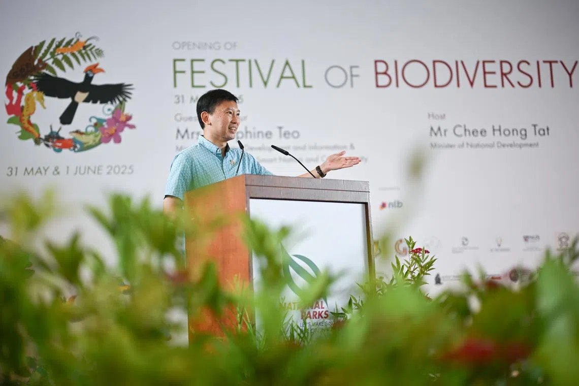Mr Chee Hong Tat, Minister for National Development, speaking at the Festival of Biodiversity 2025 at the National Library Building on May 31.