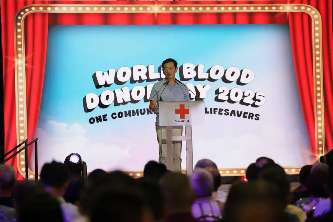 Minister for Health Ong Ye Kung delivering his speech during the World Blood Donor Day 2025 award ceremony at the Marina Bay Sands Expo and Convention Centre on June 28.