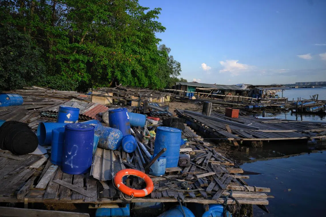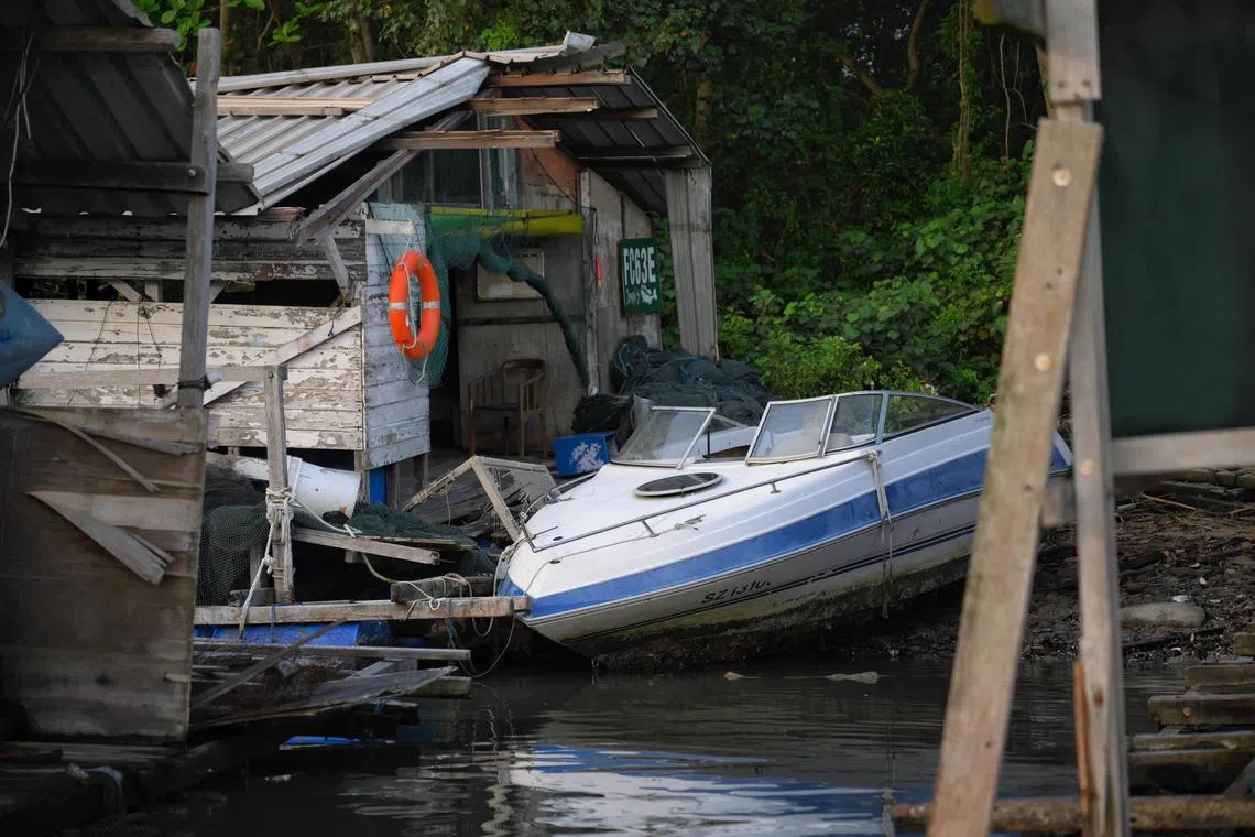 SINGAPORE – Abandoned fish farm structures, barges, large wooden planks and even a boat have been found along the shoreline of Pulau Ketam, close to Pulau Ubin.