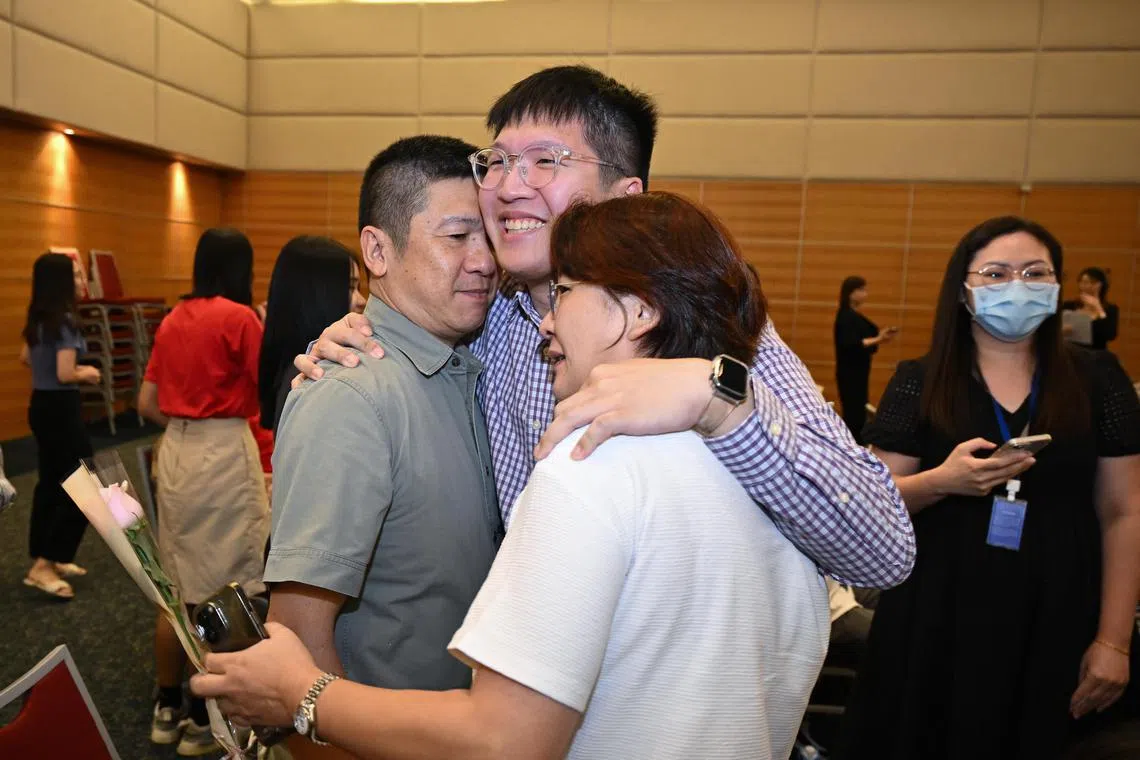 Mr Daniel Lai with his parents, Mr Michael Lai and Madam Julie Lim, during the SPH Media Scholarship Awards Ceremony 2024.
