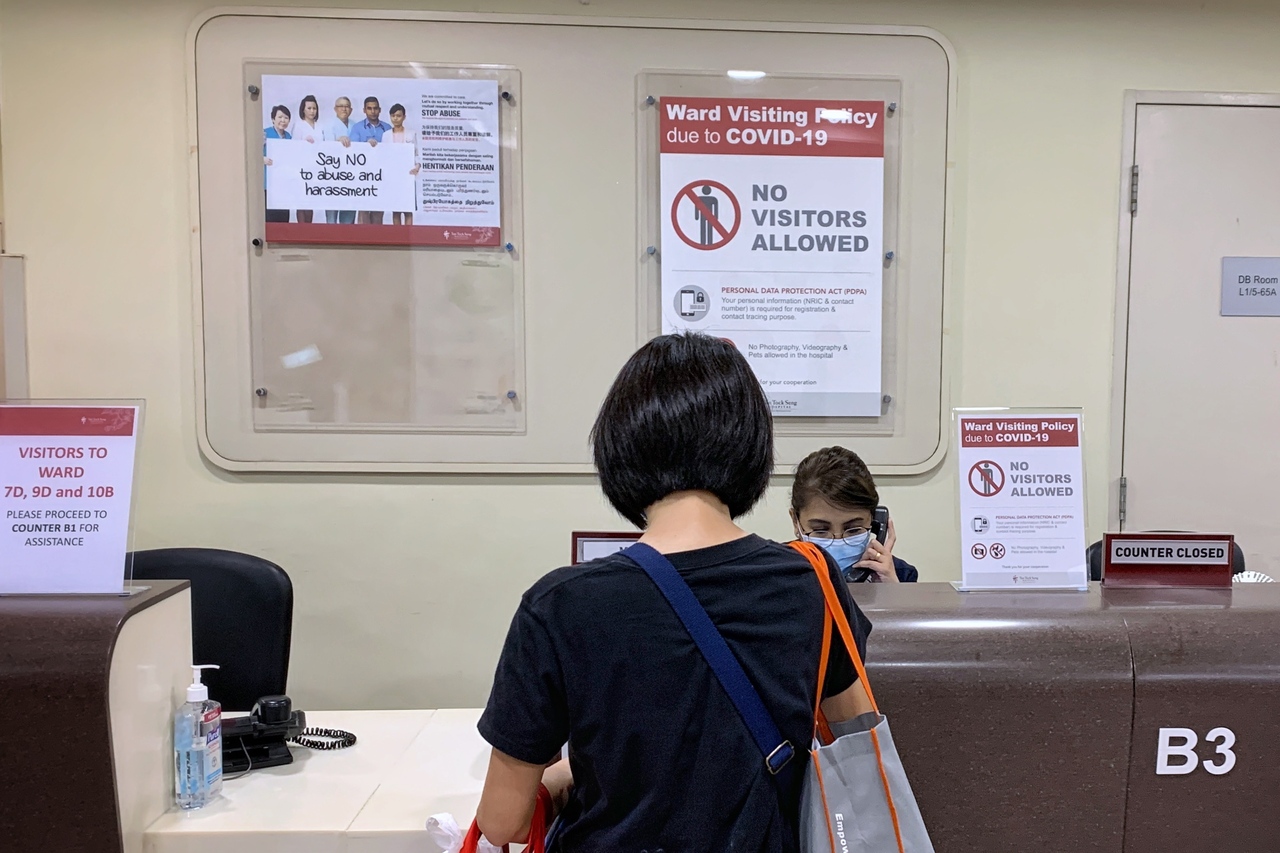 Correction note: An earlier version of this report said that two visitors to Tan Tock Seng Hospital's ward 9D are family members of a nurse. This has been corrected. We are sorry for the error.