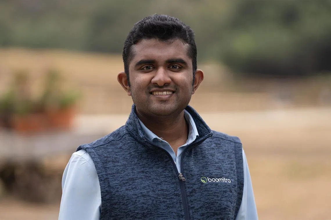Boomitra founder Aadith Moorthy. Boomitra has the technology to measure the CO2 stored in soil and converts it to credits which farmers can sell for extra income.