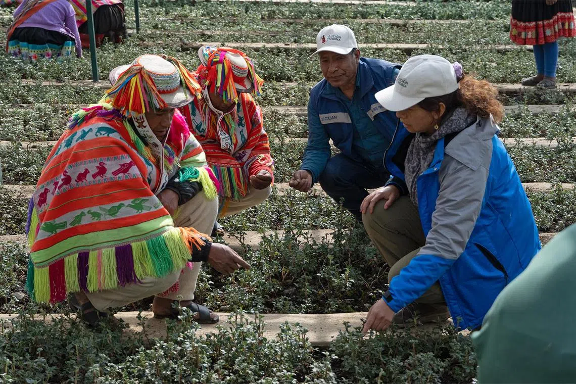 The indigenous people of Patacancha in Peru tend to native plant saplings which are then transplanted to restore their lands.