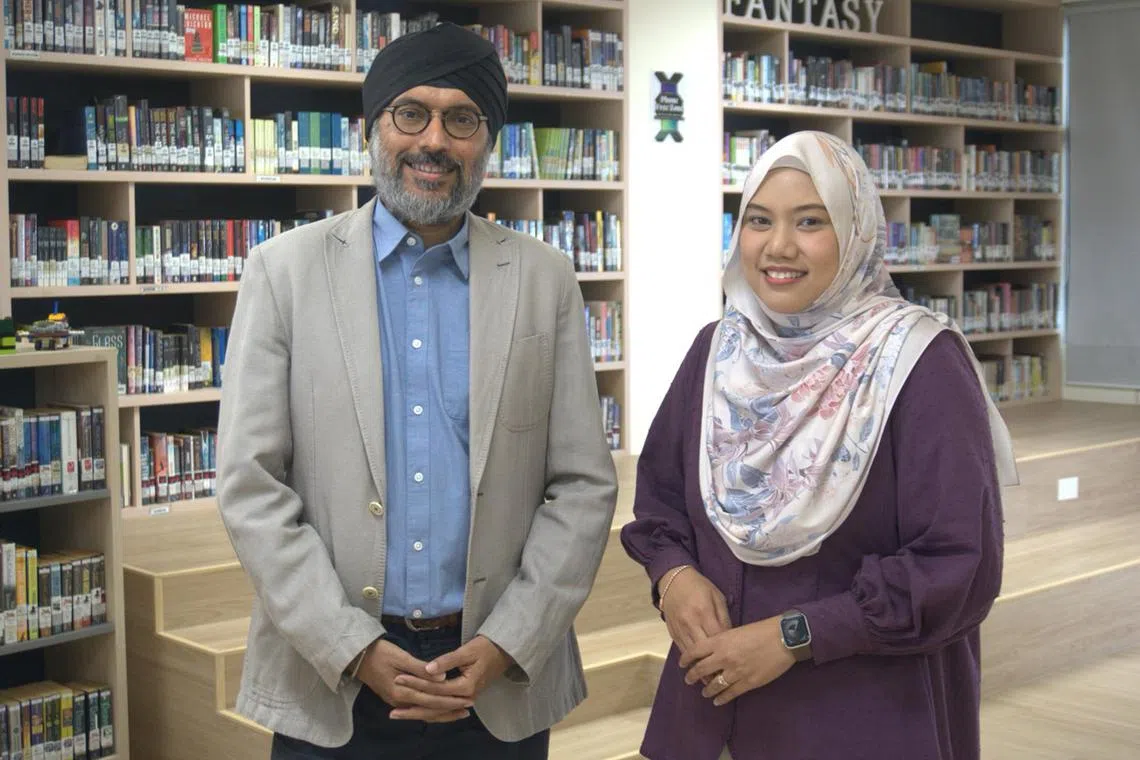 Boon Lay Secondary School principal Inderjit Singh and teacher Norfarhana Sabtu.