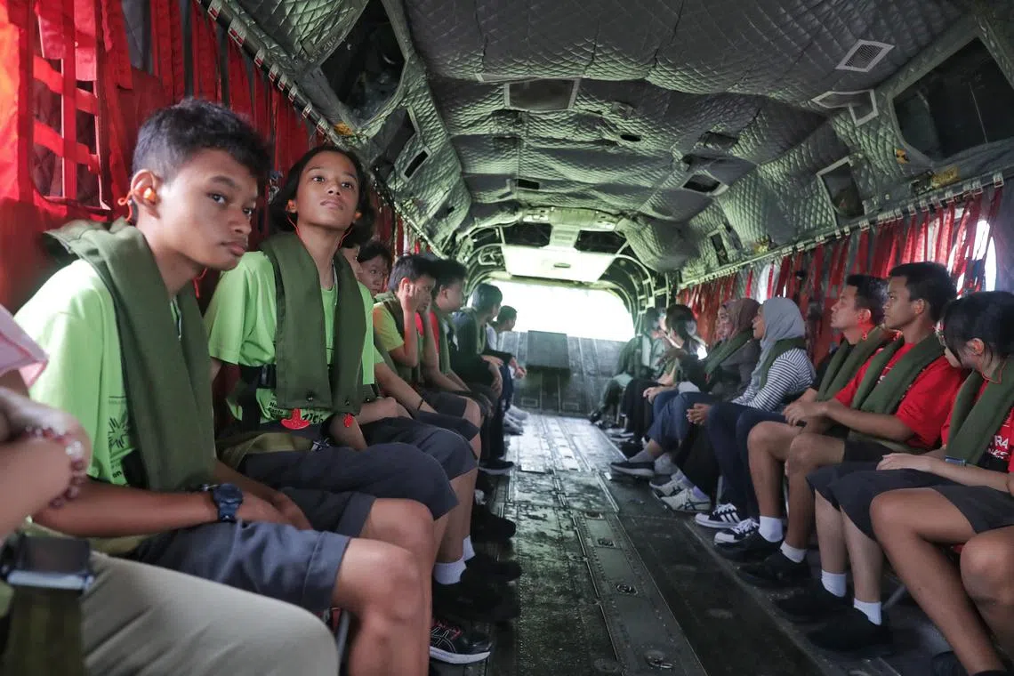On Tuesday, 28 beneficiaries from five organisations experienced being on two Chinook helicopters that took off from Sembawang Air Base.