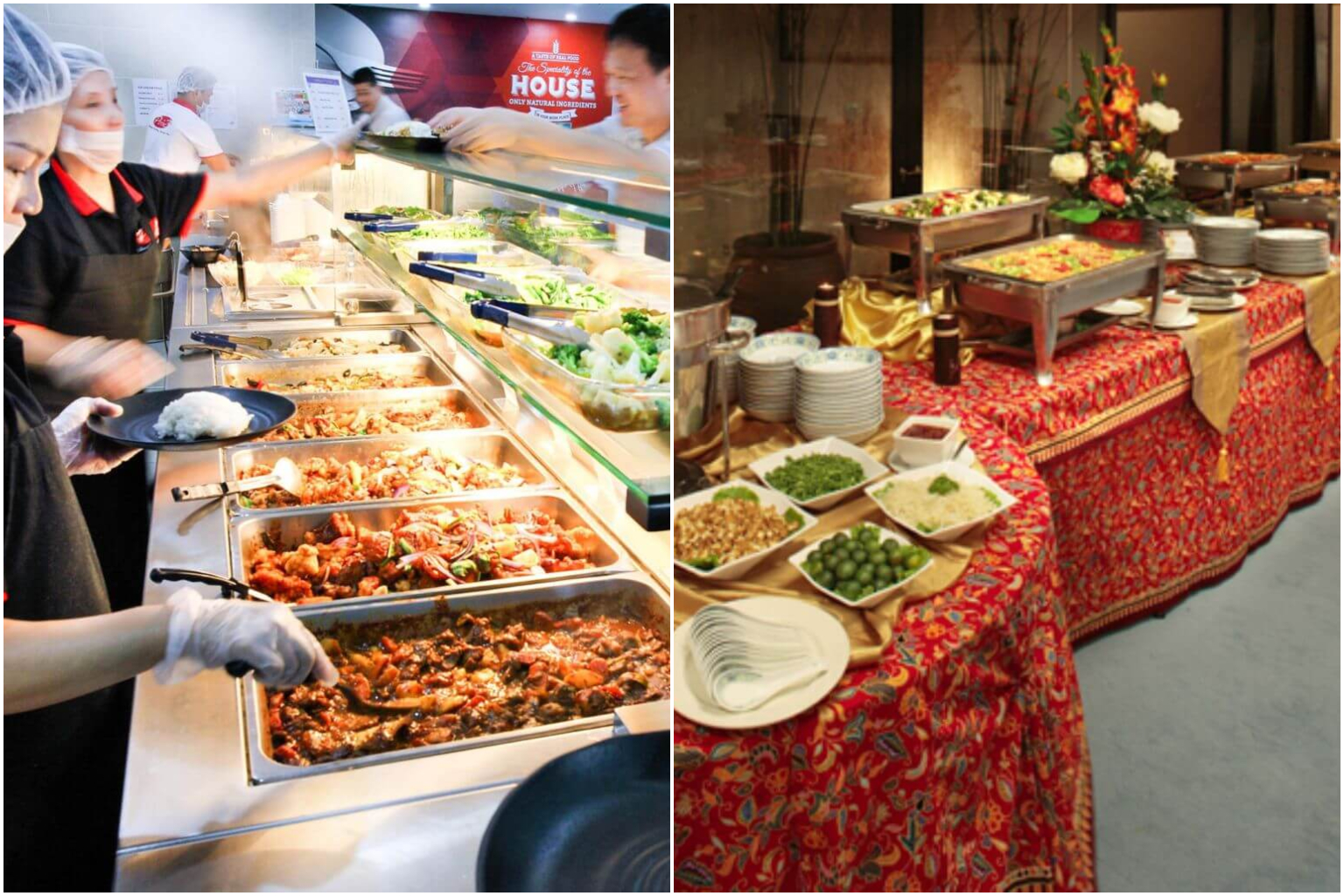 Pro*3 Institutional Catering (left) offers staff cafeteria and dining hall services, while Chilli Api Catering provides halal buffet sets for corporate and private events.