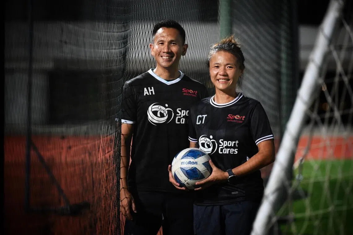 Coaches Alif Hafiz Masnor (left) and Cynthia Taye from the SportsCare Hearts Football League.