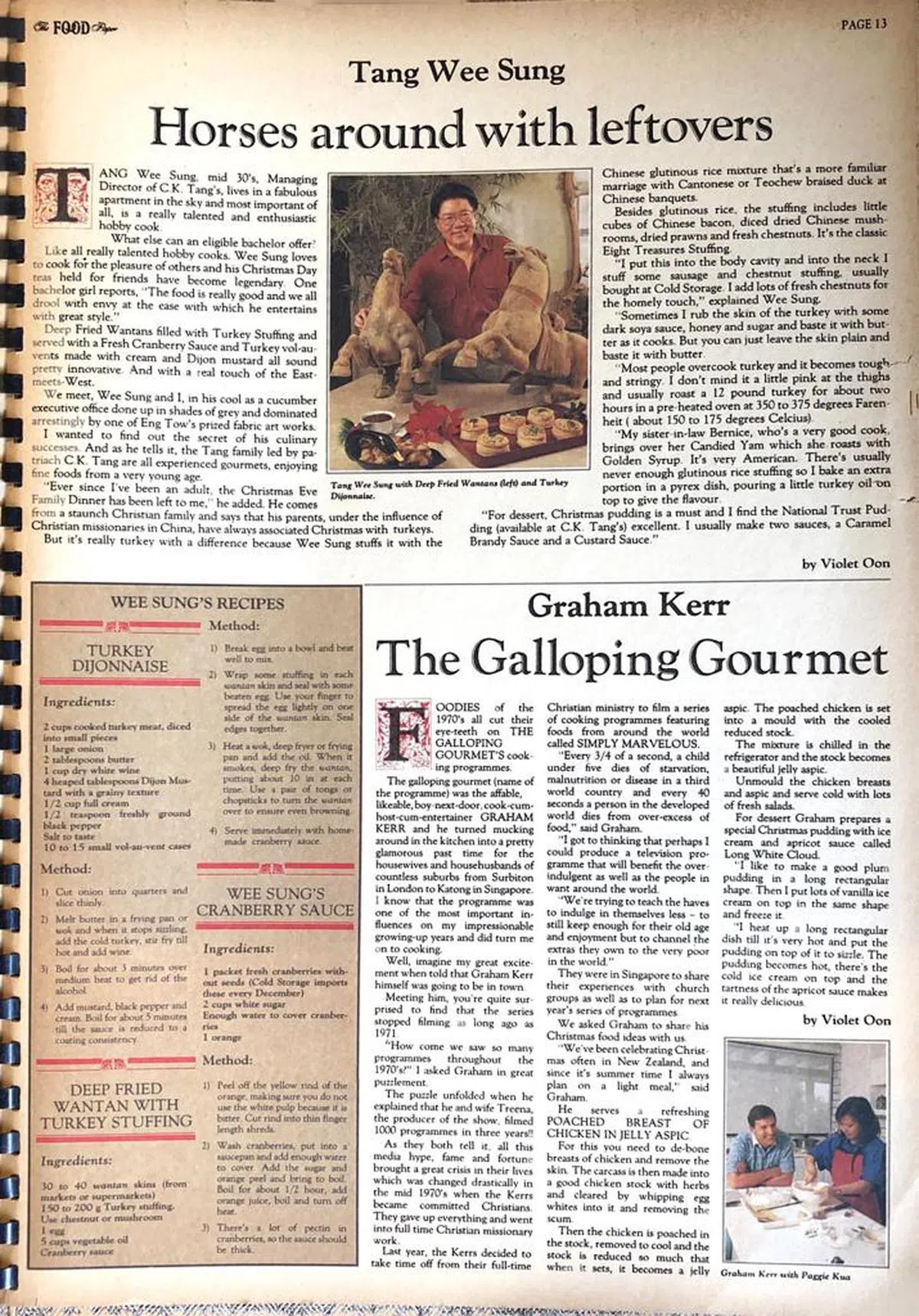 In 1987, culinary icon and then food writer Violet Oon interviewed Mr Tang about his love for cooking, and some dishes he was preparing for Christmas.