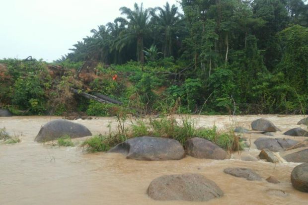 The Tesong River water level had risen due to heavy rain on Saturday.