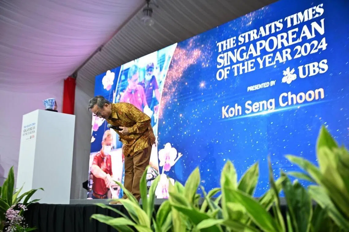 Mr Koh was presented the ST Singaporean of the Year 2024 award by President Tharman Shanmugaratnam, patron of the award, who was the guest of honour at the award ceremony.