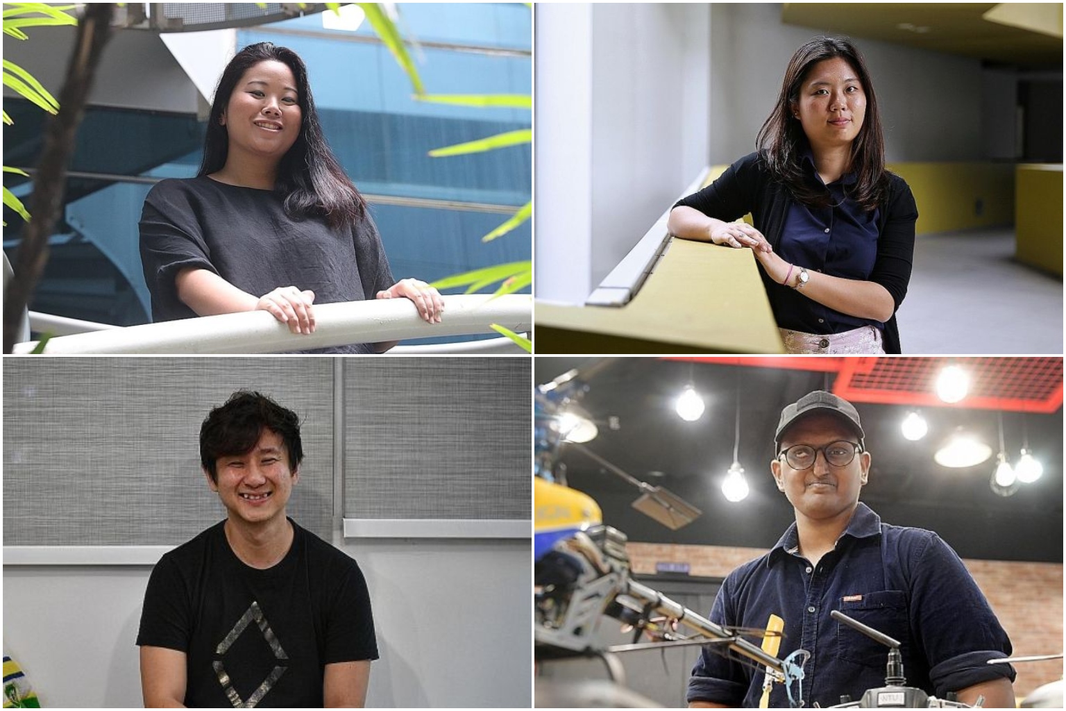 The winners of The Straits Times Generation Grit Award 2019 are (clockwise from top left) Ms Melissa Chan, Ms Law Mei Ting, Mr B. Kanesh and Mr Asher Low.