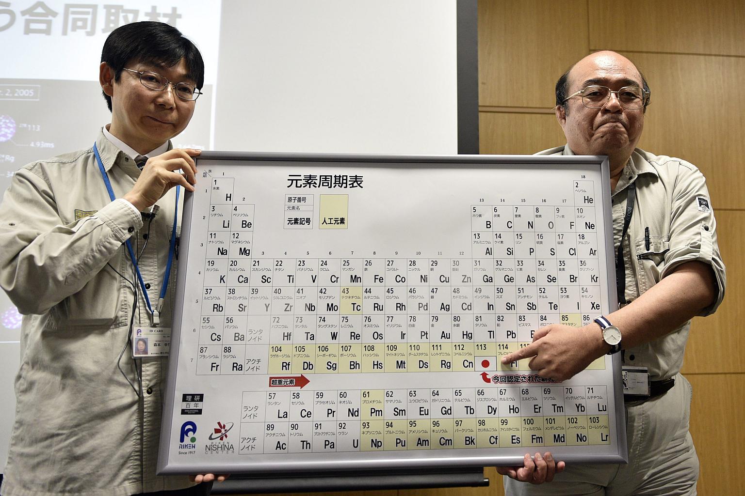 Element 113, the first element in the periodic table to be discovered in an Asian country, is christened nihonium. The name is borrowed from one of the Japanese names for Japan - "nihon" - which means the land of the rising sun. The element was discovered by Japan's Riken Institute, which houses the Nishina Centre for Accelerator Science.