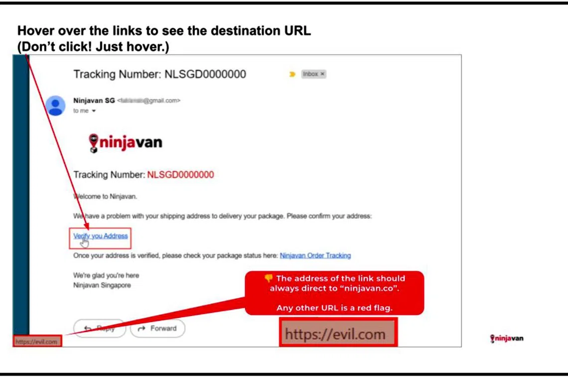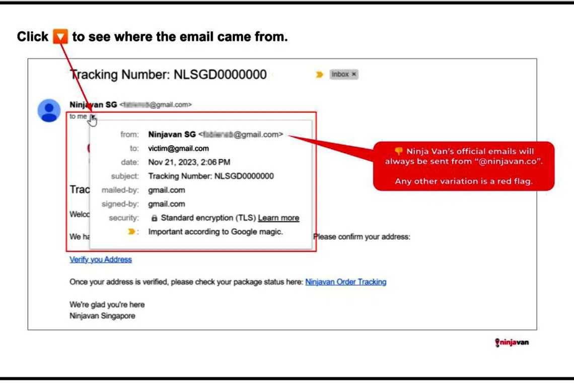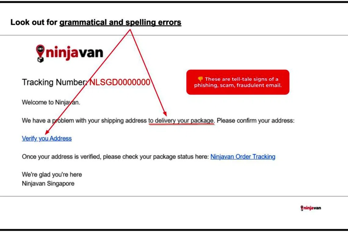 Fraudulent e-mails, the company added, can be identified a number of ways, with one red flag being an e-mail domain that does not end with @ninjavan.co.